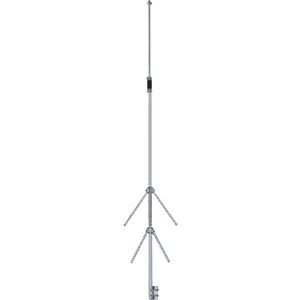 2 Meter vertical with 3 dBd gain derived from the famous extended double zepp antenna design. Radiating elements are two collinear 5/ 8 waves fed in phase. 2 sets of 1/ 4 wave radials properly decouple lower radiator from the mast. The SO-239, handles 500 Watts. 9 feet.