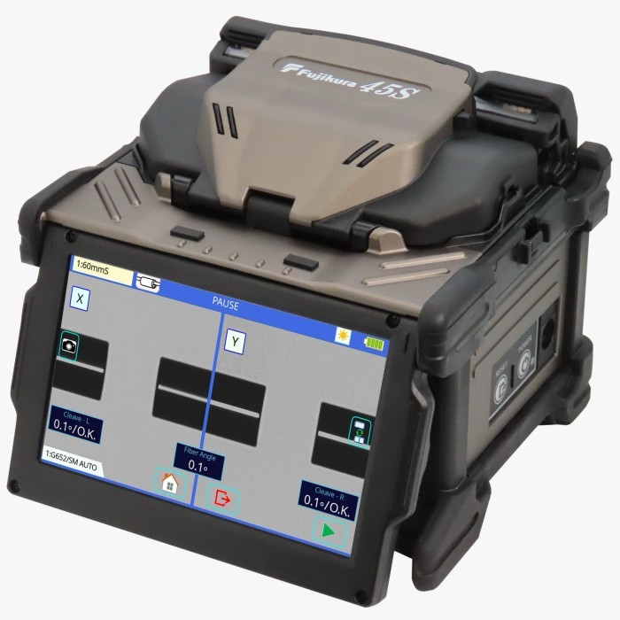 Alat sambung fiber optik (Splicer) Fujikura Splicer 45S merupakan splicer PREMIUM terbaru untuk type Active V-Groove Alignment sebagai pengganti Splicer Fujikura 31S+ yang telah sukses dan dipakai di semua operator telekomunikasi, ISP, perusahaan mining & infrasctucture, dan lainnya.