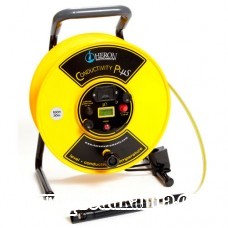 The Conductivity Plus Level and Temperature Meter accurately measures conductivity, water level and temperature in wells, boreholes, stand pipes and open bodies of water. The meter can be used to profile conductivity and temperature to depths of 1000 ft ( 300m) . Unlike other similar units on the market, the Conductivity Plus uses a measuring tape with a high tensile steel core, tested for stretch resistance to ASME standards. Two seven strand stainless steel conductors add to the strength of the tape. The tape graduations are in decimal feet with markings at each 1/ 100th foot or metric with markings at each mm.