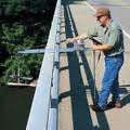WATERMARK Sounding Reel & Sounding Weight : The bridge board was designed for use in making discharge measurements and obtaining water quality samples from off of bridges. It is a free-standing support, accommodating A-Pack, A- 55 or B-56 sounding reels. It comes with an adjustable foot rest which makes it easily adaptable to bridge railings of different heights and walkways of various widths. In use, the Bridge Board is set to the approximate height of the bridge rail at the measurement site. With the sounding reel secured to the mounting plate, the boom is positioned so the sheave extends out past the bridge rail. The suspension cable is now stretched out over the sheave at the end of the 4 foot long boom. The current meter or sampler is then suspended from the cable and is in position to be lowered into the water below. The maximum sounding weight to be used with the bridge board is 50 pounds ( 23 kg) .
